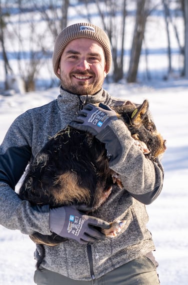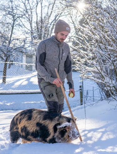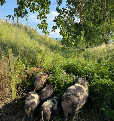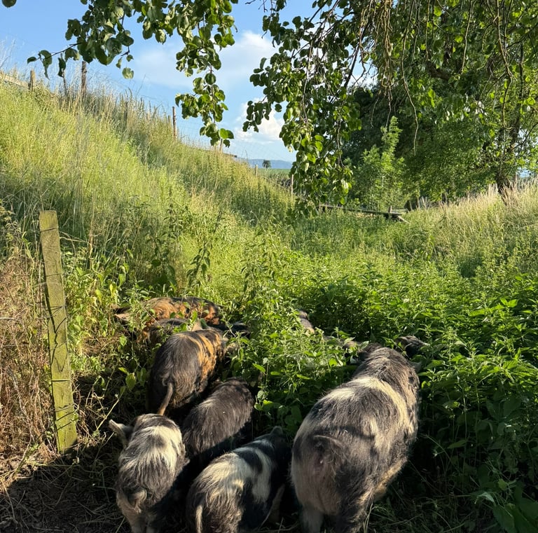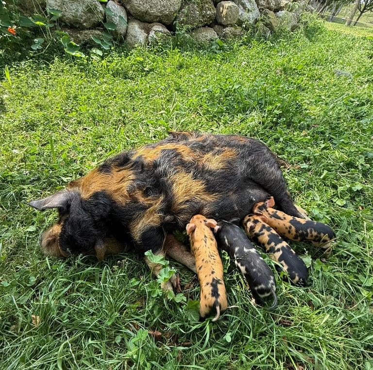 Wir züchten liebevoll Kunekune Schweine, die für ihr hochwertiges Fleisch und ihre Weidetauglichkeit bekannt sind. Nachhaltigkeit und Tierwohl stehen bei uns an erster Stelle.