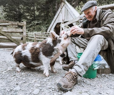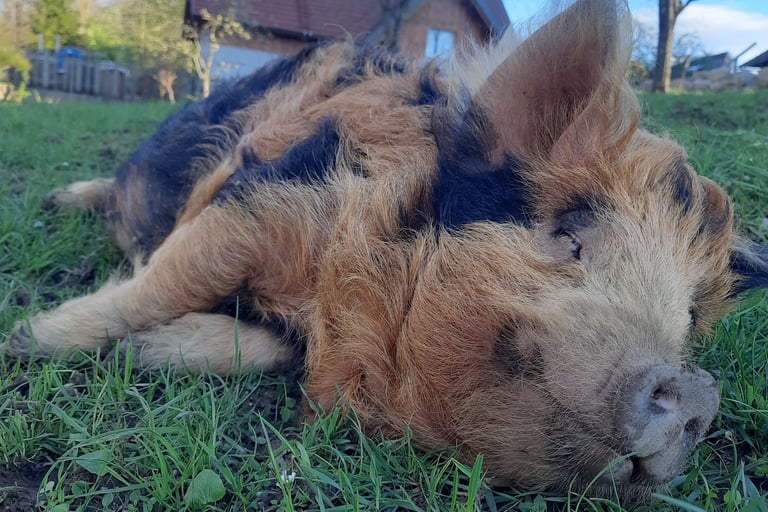 Entdecken Sie unsere liebevoll gezüchteten Kunekune-Schweine, die für ihr freundliches und überaus freundliches gemüht bekannt sind. Erfahren Sie mehr über unsere Weidehaltung, Zuchtmethoden und für höchste Qualität in Fleischspezialitäten.