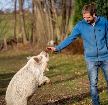Entdecken Sie unsere liebevoll gezüchteten Kunekune-Schweine, die für ihr freundliches und überaus freundliches gemüht bekannt sind. Erfahren Sie mehr über unsere Weidehaltung, Zuchtmethoden und für höchste Qualität in Fleischspezialitäten.